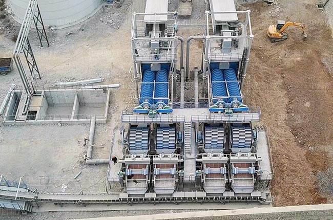 “一拖二”的設備配置方案,能輕松控制生產線啟停運行,滿足旺季滿負荷生產。在濕法工藝上,采用“螺旋洗砂機+輪斗洗砂機+細砂回收脫水一體機”,優化水洗砂品質的同時,還能對細沙進行收集,減少細沙流失。干式制砂工藝上,配備有選粉樓優化機制砂,成品砂級配符合標二區中砂。
