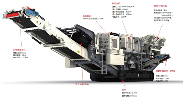 型號與價錢:配合相同,型號不同的移動式碎石機價錢也不同,如配顎破的移動式碎石機,型號有HX938HD86、HX1149HD98、HX1349HD110等,不同的型號配合的顎破型號、電機和整機的重量不同,因此相同配合,不同型號的機械價錢也不同,通常型號越大,機械的價錢越高。