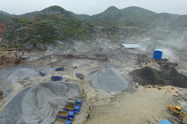 石灰石硬度不高,采用“給料機+重錘破+振動篩+制砂機+洗砂機”配置,可以減少設(shè)備投資,基礎(chǔ)建設(shè)費用,可減少40%以上的費用投資。