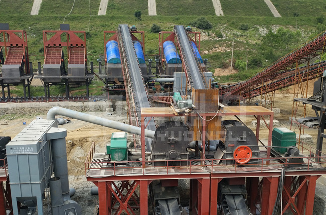 設(shè)備配置:臥式旋回破+反擊式破碎機(jī)+配套設(shè)備